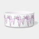 ein pinkfarbenes Leckerbissen und eine Wasserschale.