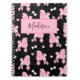 Niedlich rosa Poodles Muster mit Bows and Hearts auf zartem Swirl Muster ein weiches schwarzes HintergrundNotebook mit Individuelle Name und Monogramm.