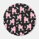 Pink Poodles and Bows Pattern Black Magnet