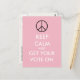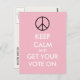 Wenn Sie an den Power der Frauen glauben, sind unsere Behalt Calm And VOTE Custom Pink Postkarten eine coole Erinnerung, um gesinnte Freunde zu mögen, um herauszukommen und zu wählen, um Ihre Lieblings-Kandidatin zu unterstützen! Parody inspiriert Design bietet klassische BEHALTEN CALM-Motive in Verbindung mit dem Friedenszeichen. Einfach anpassen, indem Sie Ihre personalisierte Nachricht auf der Rückseite ohne Aufpreis hinzufügen! <em>Mengenrabatte verfügbar!</em>