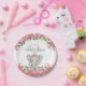 Niedliche kleine Mädchen-Dusche Papier Teller mit einem bezaubernden Elefanten sitzend auf einem Bett von hellrosa Blume und mit einem glitzernden silbernen Tiara und rosa Bogen. Personalisieren Sie Ihre persönlichen Daten mit dem Namen der künftigen Mutter. Kontaktieren Sie uns für Hilfe bei der Anpassung oder um passende Produkte anzufordern.