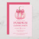 Rosa Halloween Kürbisschnitzerei Party Einladung mit einem Coquette ästhetischen Kürbis mit einem Bogen.