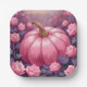 Pink Pumpkin Rose Floral Halloween Thanksgiving Holiday Design Paper Plates