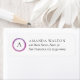 Modern business return address label featuring a simple yet professional design with your monogram inside of a pink and purple circle.