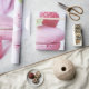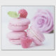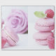 Umhüllungspapier mit einem köstlichen Foto mit einem Turm aus rosa Macarons mit Himbeeren, die um ihn herum aufgestellt wurden. Wunderbar göttlich.