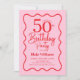 Pink Red Retro 50th Birthday Wavy Border Einladung