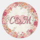 Pink & Red Romantic Spring Floral Monogram Wedding Runder Aufkleber