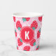 Pink Red Strawberries Floral Pattern Monogram Pappbecher