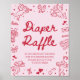 Pink Red Valentine Baby Shower Diaper Raffle Game Poster