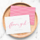 Die stylish Will You Be My Flower Girl-Karte mit den Worten "Blume" in einem entspannenden kursiven Skript in rosa vor weißem Hintergrund. Die Karte hat eine rosa Rückseite mit überlappenden weißen Linien. Personalisieren Sie es, indem Sie den Platzhalter-Text ersetzen. Für weitere Optionen, wie zum Beispiel den Schriftart zu ändern und ihn zu vergrößern oder zu verändern, klicken Sie auf den Button "Anpassen". *Bitte beachten Sie, dass das Zazzle-Wasserzeichen, das in der Zoomvorschau angezeigt wird, NICHT auf dem gedruckten Endprodukt erscheint. © Rosewood and Citrus