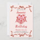 Pink Retro Cake and red Bow Coquette Birthday Einladung