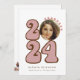 Rosa Wildblume Retro Groovy Script Einfaches Foto Abschluss Einladungs-Karte. Glückwünsche die GRAD! Herzlichen Glückwunsch zu ihrem verdienten Erfolg und feiern sie mit dieser schönen Karte. Alle Texte sind so vorbereitet, dass Sie sie einfach und schnell mit Ihren eigenen Details personalisieren können.