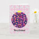 Auf dieser lustigen Retro-Weihnachtskarte, die aus einem Vintagen Blumenmuster besteht, wird mein Originalwerk präsentiert, das zu einem grafischen Weihnachtsschmuck in Rosa und lila Tönen nachgebaut wurde, mit einer silbernen Kette und auf einem rosa, Vintagen Hintergrund platziert wurde - styliert für ein festliches und nostalgisches Erscheinungsbild. Die Vorderseite der Karte Staaten "Frohe Weihnachten!" und die Innenseite der Staaten "Mögen die Dekorationen der Saison Erinnerungen von fröhlichen Erinnerungen und bringen Glück für das neue Jahr!". Es gibt auch genügend Platz, um Ihre eigene Note hinzuzufügen. Diese hübsche und fröhliche Karte würde die Saison für jeden aufheitern, besonders für diejenigen, die Vintage und Retro-Designs genießen.