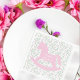 Pretty pink rocking horse with shades of pink and purple next to fun flowers