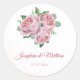 Pink Rose Bouquet Wasserfarbe Hochzeitskleber Runder Aufkleber