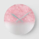 Pink Rose Glitter Metal Gray Silver Sparkly Abstra Runde Wanduhr