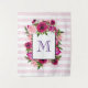 Mit Monogramm Tapisserie mit Blumenstrauß, hellrosa Rose und dunkelrosa Pappkuchen mit üppig grünen Blätter. Ein überlagerter Rahmen, um Ihren personalisierten Monogramm-Buchstaben hineinzustecken. Der Hintergrund ist ein weiches pastellrosa gestreiftes Muster.