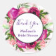 Vielen Dank für Ihr Aufkleber für ein Brautparty oder andere Veranstaltung. Die Einrichtung besteht aus einem Blumenstrauß, das aus hellrosa Rose und dunkelrosa Pappeln mit vielen grünen Blätter besteht. Ein rundes Bild, das oben platziert ist, um den eigenen Text einzufügen. Der Hintergrund ist ein weiches pastellrosa gestreiftes Muster.
