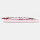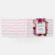 Ein Gästebuch mit Blumenstrauß aus hellrosa Rose und dunkelrosa Pappeln mit üppig grünen Blätter. Ein überlagerter Rahmen, der den personalisierten Text hineinlegt. Der Hintergrund ist ein weiches pastellrosa gestreiftes Muster.