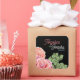 Einfache Rosa-Quadrat-Aufkleber mit rosa Rosa-Blume und grüne Blätter mit Markierstift. Eine rosa Rosenfarbe Markerfarbe machte Hochzeitseinladung.