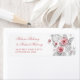 This wedding labels features pink roses and gray paper cut leaves on a white background and an elegant vintage calligraphic script.