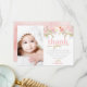 Eine florale Rose rosa Wasserfall Kaskaden über den großen rosa und gold Dank Ihnen Text, um mit unserer Little Miss ONE koordinieren Einladung und Thema. Durch das Hinzufügen eines Fotos des besonderen Tages werden diese Pflaster für Ihre Gäste viel unvergesslicher. Die passenden Artikel dieser Kollektion finden Sie in unserem Shop.