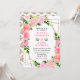 This fun and whimsical wedding invitation features watercolor pink roses and foliage on a gold geometric frame. The text combines handwritten script and serif fonts for a stylish and modern look. This is perfect for a spring or summer rustic wedding.