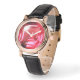 Uhr, Klassische Damenuhr mit schwarzen Lederarmband