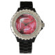 Uhr, Klassische Damenuhr mit schwarzen Lederarmband