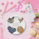 Niedliche Safari Thema Geburtstagsparty Papier Platte mit Darstellung von Zootieren (Zebra, Giraffe, Elefant, Löwe) mit rosa Blume, Party Hüte und Krone. Ideal für das Party eines Mädchens.