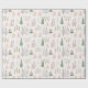 Dieses Verpackungspapier für Weihnachten und die Ferienzeit ist im boho Stil mit niedlich minimalistischen Bäumen in Pastellfarben von Pink und Salbei grün dekoriert.