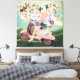 Moderne Collage Wall Art. Dieser ist ein Vintager Retro-rosa Roller mit den Fahrerbeinen gezeigt und mit einem Strauß von Blume gegen einen dramatischen wolkigen Himmel mit Schmetterlingen auf grünem Gras. Farben aus blassem Pfirsich, pinken, gelb, lavender, blau und grün. Spaß, Mod und eklektische Ephemonie. Dies ist eine flache Oberfläche mit einer glatten Leinwand. Spaß, surreale Kunst mit einer Mischung aus Collage und digitaler Kunst, mit einem Vintagen Retro-Gefühl Mitte des Jahrhunderts.