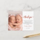 Elegantes Script Foto Girl Twins Neugeborene Babies Danke Postcard. Mit einem einfachen, modernen, wunderschönen "Dankeschön"-Text in einer kursiv handgeschriebenen Kalligraphie Swash Schwanz Schriftart-Skript in Imitats Rose Goldfolie (oder rot rosa Folie) und vorgefertigte persönliche Nachricht Great for baby girl. Einfach mit Fotos und Details für Ihr Baby personalisieren.