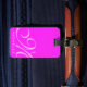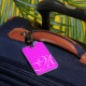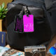 individueller rosa Gepäckanhänger mit Ledergurt: großes Skriptmonogramm und Name