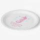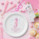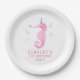These personalized paper plates are perfect for a girl 1st birthday party but can be adapted for any occasion. Features a cute pink seahorse under the sea in a watercolor style graphic, and simple typography. Easy to customize for ANY AGE with the child's name and party details.
