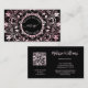 Ein rosa glänzendes metallisches, faszinierendes Blumenmandala mit einem Logo und Ihren Initialen, Namen und Beruf auf einem schwarzen Hintergrund. Auf der Rückseite ist ein scannbarer qr-Code für Ihre Website. Ideal für Salon, Haar und Make-up, Beauty, Yogalehrerin, Boutique oder jede Unternehmerin.