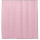 "Pink shower curtain with a subtle diamond pattern shown in two views: hung flat and installed in a simple, modern bathroom setting."