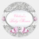 Pink & Silver Floral Bow Babyaufkleber Runder Aufkleber
