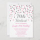 Custom 70. Geburtstag Party Einladungen in einem rosa und silbernen Glitzer Konfetti Muster. Fügen Sie Ihren Namen und Party Details für eine einzigartige und stilvolle 50 und fabelhafte Party Einladung.