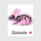 Ein rosa Kaninchen mit schwarzem Skelett schafft ein unheimliches süße Tier-Design. Es ist hier auf einem kiss-geschnittenen Aufkleber in verschiedenen Größen zu sehen. Verwenden Sie, um Notebooks, Scrapbooks, Telefonzellen, Laptops und vieles mehr zu dekorieren. Spaß für alle, die eine unheimliche Touch mögen!