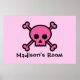 Ein cooles individuelles rosa Emo-Poster für Ihr Schlafzimmer mit schwarzen Querknochen hinter dem Schädel. Personalisieren Sie dies mit dem Namen Ihres Teenagers oder mit einem anderen Text.