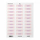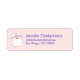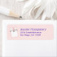 Adressetiketten mit einer Abbildung einer niedlichen schlafenden Kätzin. Die Augen sahen glücklich und friedlich aus. Set auf einem hellrosa Hintergrund.