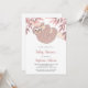 Die Babydusche dieses Mädchens ist mit einer niedlichen Rose goldenen Glitzer-Babyfliege geschmückt, umgeben von Aquarellfarben-Blätter in Rosatönen. Passen Sie die Einladung dieses kleinen Mädchens mit Ihrem Namen und Ihren Details an. Original Wasserfarbe © Michele Davies.