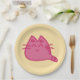 ein niedlicher Cartoon, der von einer rosa lächelnden Kätzin zeichne.