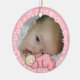 Das 1. Weihnachtsdekor des Babys mit einem schlafenden Baby in einem rosa Schlaf- und Schneeflockendesign. Sie können dieses Ornament ganz einfach mit dem Foto eines Babys anpassen und Ihren eigenen Text auf der Rückseite hinzufügen. Es ist großartig als 1. Weihnachtsgeschenk und wird ein Memento für die nächsten Jahre.
