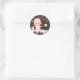 Pink Snowflake Babyduschkleber mit einem hübschen kleinen Mädchen, das eine süße rosa Schneedecke trägt, und Hut auf einem rustikalen Schneeflockhintergrund. Sie können Text hinzufügen, um diese niedlichen Baby Duschkleber für den Winter zu personalisieren.