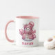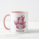 Gönnen Sie sich ein Geschenk voller Süße mit dieser Personalisierten Pink Snowman Girl Individuelle Name Tasse! Diese hübsche Weihnachtskaffee-Tasse besticht durch einen bezaubernden Schneemann, der in einem gemütlichen rosa Mantel, Hut und Schal gekleidet ist und ein süß rosa Herz trägt. Einfach mit einem beliebigen Namen anpassen, um es zu einem perfekten Urlaubsgeschenk für eine Tochter, einen Freund oder jeden, der alles Rosa und Feierliche Lieben.