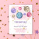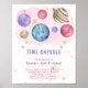 WATERCOLOR Magische Galaxie Weltraum Thema Geburtstagseinladung. Planeten und Sterne in rosa, lila, goldene Farbe.