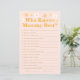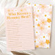 Mit unserem Personalisierten Pink Spring Baby Shower Game "Who Knows Mommy Best" können Sie Ihre Babydusche ganz besonders genießen. Dieses hübsche Spiel ist perfekt für Babydusche geeignet und passt zu verschiedenen Themen der Frühjahrsdusche. Ob Sie die Ideen der Frühjahrs-Babydusche erkunden, eine Babydusche im April beherbergen oder nach März-Babydusche suchen, das Blumendesign ergänzt die Themen der Gartenbabydusche und die Themen der Wildblume-Babydusche. Ideal für eine Babydusche mit blühender Dusche, sie verleiht jedem Baby eine Touch Eleganz in Blütendusche oder in Blütendusche.