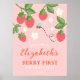 Welcome your guests in the sweetest way with this Berry First Birthday welcome sign! Featuring red strawberries, dainty white daisies, and a cheerful little bee on a soft pink background, this strawberry birthday party sign sets the perfect tone for your celebration.